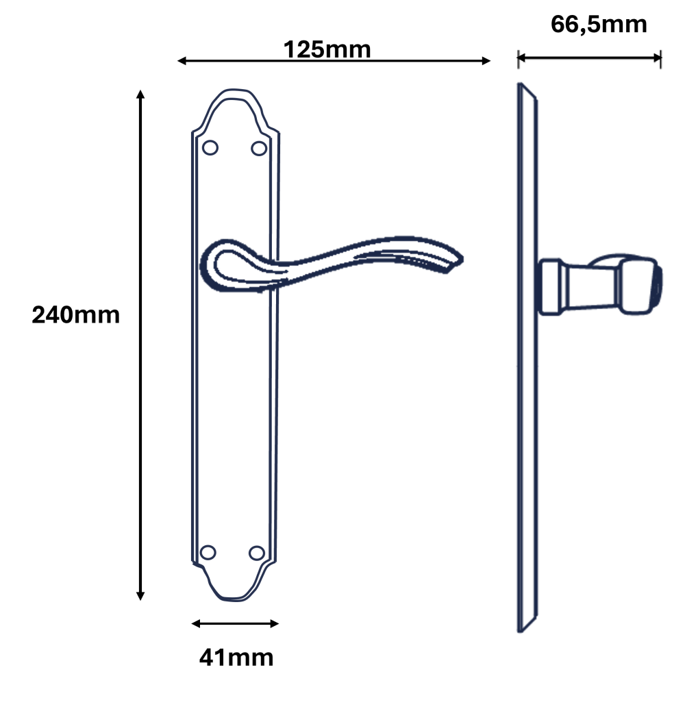 MEDIDAS: 240mm.Largo Placa X 41mm. ancho placa X 125mm. Largo manilla